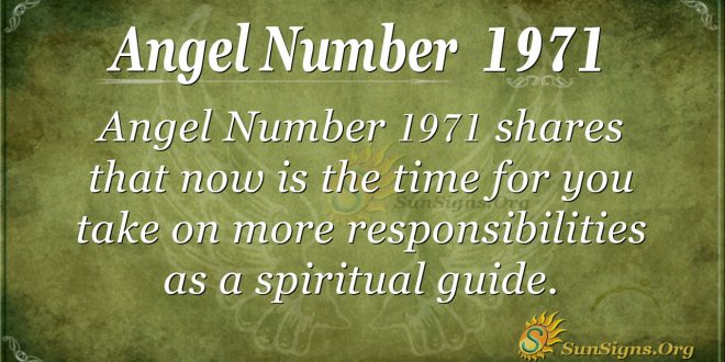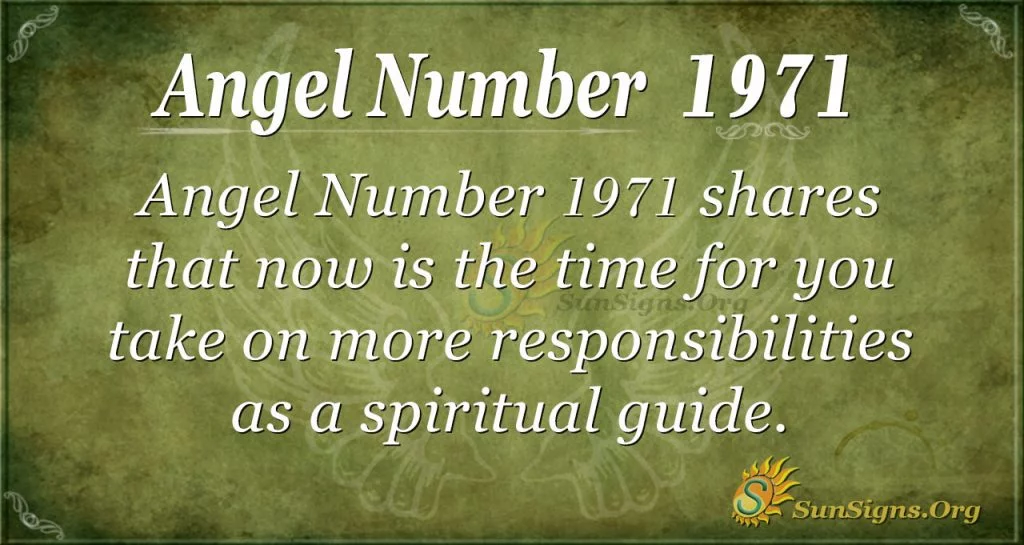 The meaning of 1971 tells you that the longer you have to wait for something, the better you will appreciate it when it comes. Do not get tired of the waiting. When your need is finally met, you will be glad you waited. All things will work out in due course.
