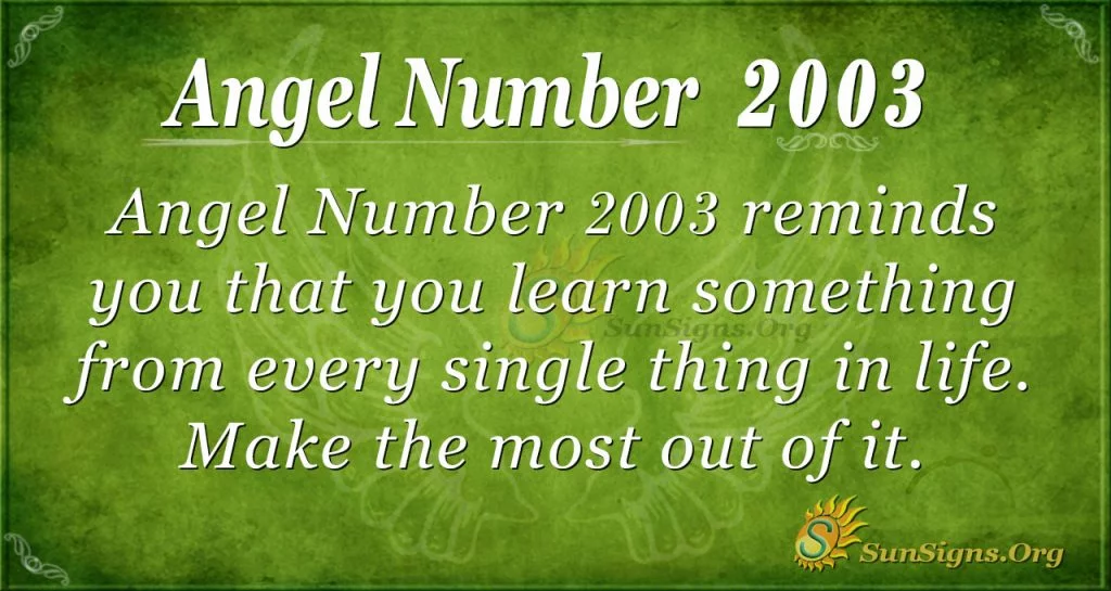 Generally, 2003 spiritually means that you may earn big in life. In other words, you should not question your potential because you are doing great. Therefore, you should keep going and continue with the spirit that you have.