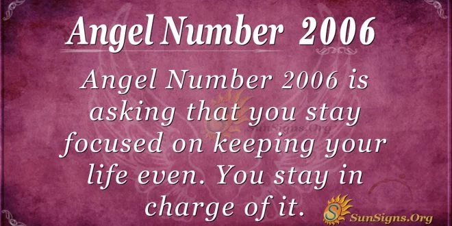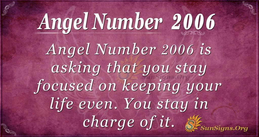 Basically, your angels are reminding you that a lot of things will be better if you stay calm and balanced in all that you do. Thus, the 2006 angel number is asking that you stay focused on keeping your life even and in charge of it.