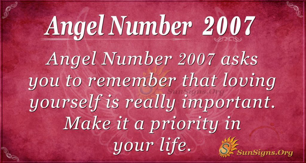Reminding you that you have to take care of yourself, the 2007 angel number asks you to remember that loving yourself is really important and that you need to make it a priority in your life. Taking care of all of your needs is something that you should really focus on when you need something to keep you going.