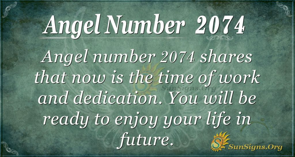 Sharing that now is a time of work and dedication, Angel Number 2074 wants you to focus on the fact that the more work you put into your life now, the better it will be when you are ready to enjoy it.