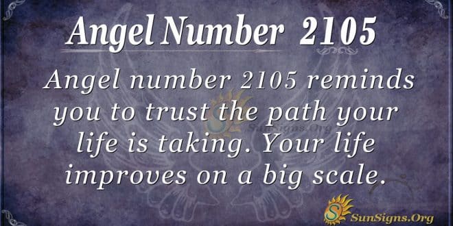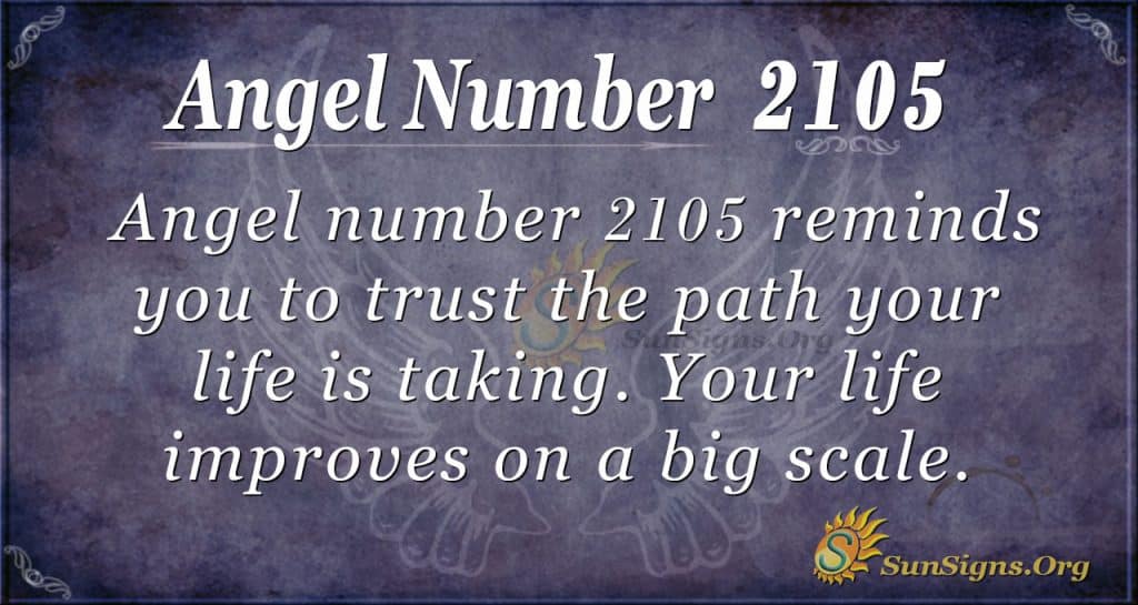 Reminding you to trust the path your life is taking, Angel Number 2105 wants you to focus on the fact that you will notice your life improving on a big scale if you remember that your life is heading in this direction for one reason or another.