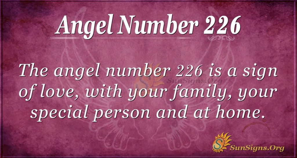 The angel number 226 is a sign of love with your family, your particular person, and your home. There seems to be a lack of love surrounding you, and you may wonder how this can be activated.