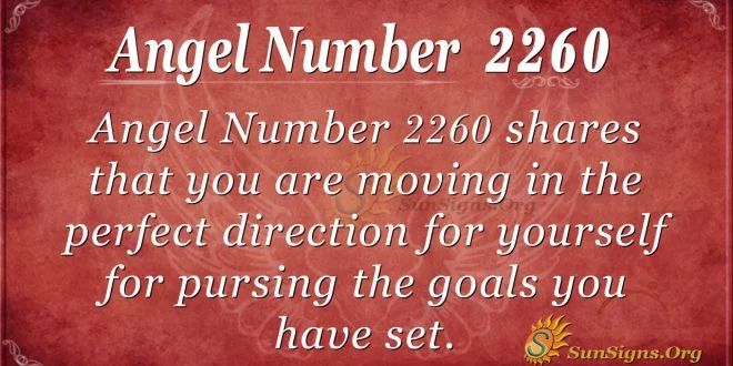 While you pursue the goals you have set for yourself in life, Angel Number 2260 wants you to know that you are moving in the perfect direction. You are tackling the things that you should be, and your angels are right there to take the strain off you so that you can move forward and enjoy all of the things you are winning for yourself.