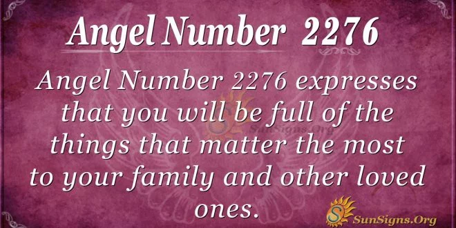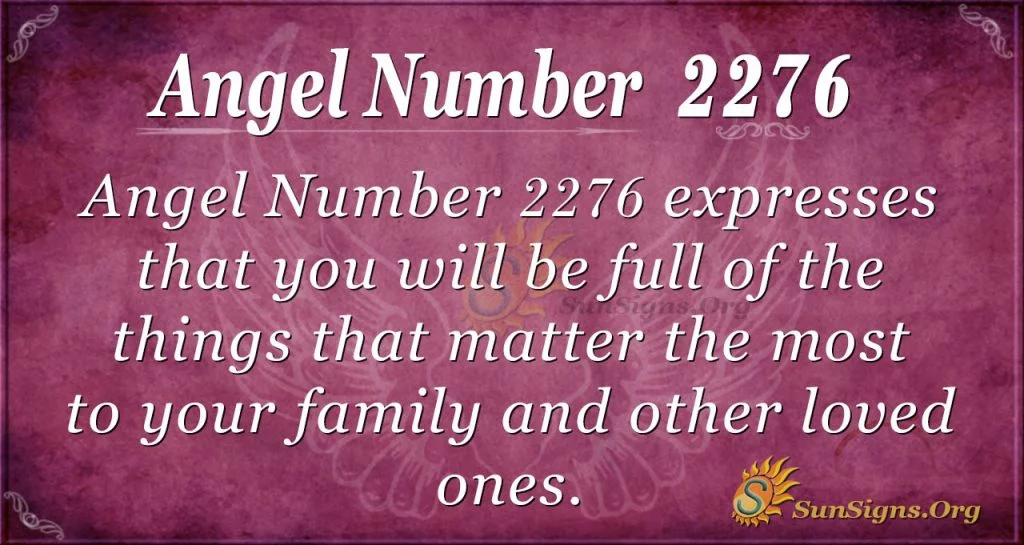 Enjoy your blessings. The number 2276 tells you not to enjoy your blessings alone. As you celebrate what you have achieved in life, think about those around you. Help the people around you have a good life like yours. You stand to lose nothing by helping others.