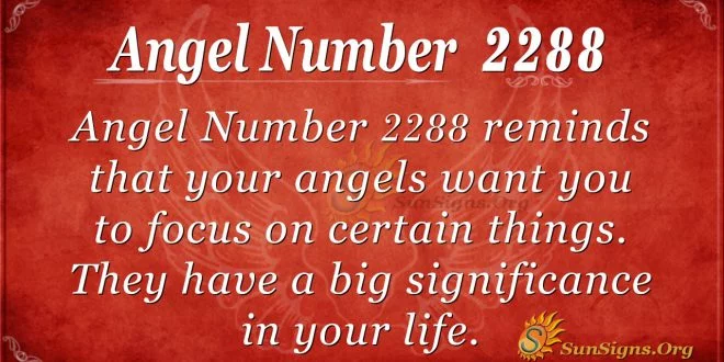 Angel Number 2288 reminds you that your angels tell you to focus on certain things because they have a big significance in your life, whether you know what it is or not. As such, you must ensure that you focus on the fact that your angels know it and direct you to it. Please pay attention to what they are instructing you.