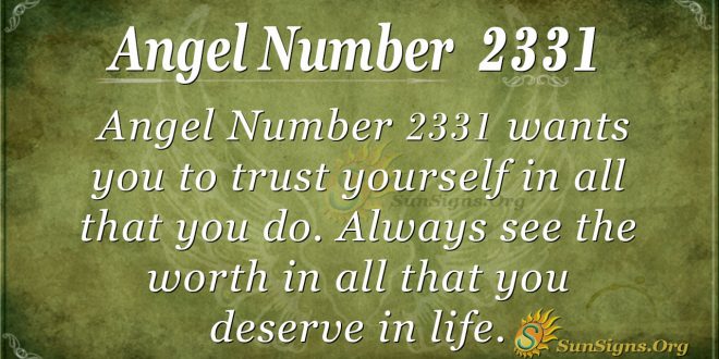 Wanting you always to see the worth of all you do, Angel Number 2331 wants you to trust yourself and all you deserve. You are full of all sorts of good elements, and the world deserves to see them all come true for you and your benefit.