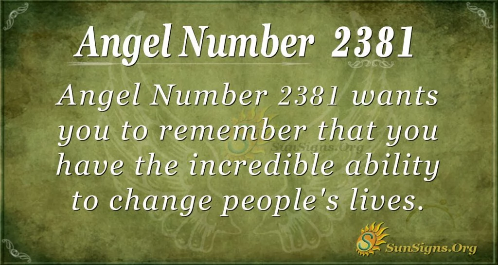 Angel Number 2381 reminds you that you are full of incredible things that will change people’s lives. You have the astonishing ability to change people’s lives if you remember that you need to always see yourself as deserving of the best things in life.