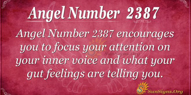 Your angels want you to trust your voice above all those trying to get you to listen to them. Angel Number 2387 encourages you to focus on what your gut feelings are telling you. Since these are coming to you directly from your angels, you can see yourself coming to all of the best parts of your life.
