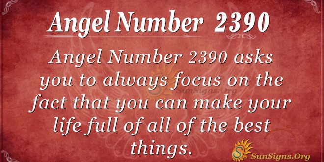 The changes taking place in your life will bless you with abundance, peace, love, and light. Angel Number 2390 is a sign that you should always trust in the divine process and do the things that make you happy and bring you joy. Your guardian angels assure you that things will improve if you focus on the right things in your life.