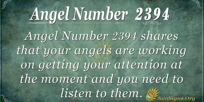 Angel Number 2394 is a sign from the divine realm and your guardian angels that you need to do something positive with your life. Do the things that will enable you to achieve your goals and aspirations. All your thoughts and prayers are related to the meaning of this angel number.