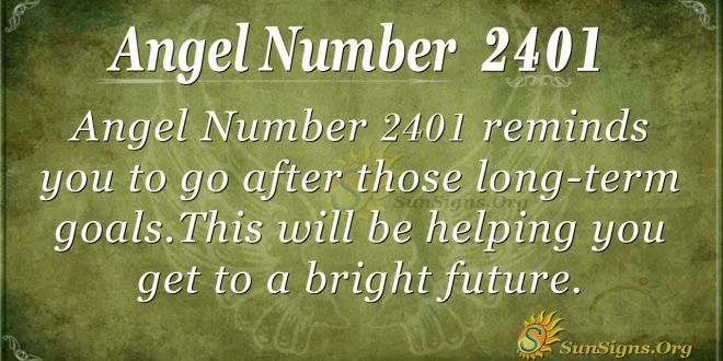 Moreover, 2401 symbolism indicates that you should go after what matters most to you. The 2401 angel number reminds you that going after those long-term goals will help you reach a bright future. Perhaps that will make you feel fulfilled and complete in life and other great things in your world.