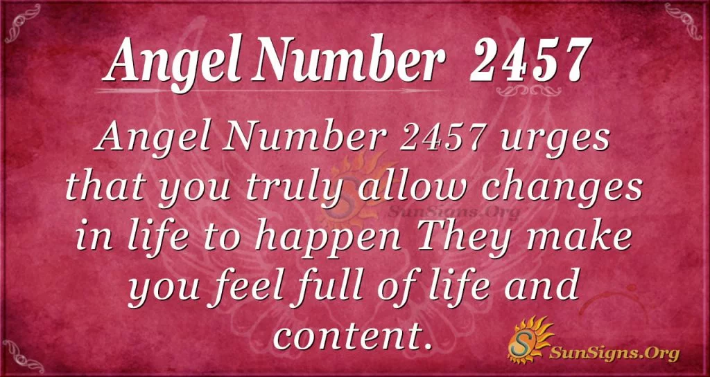 What does 2457 mean spiritually? It signifies that you need to anticipate change significantly in the fast pace of dynamism in the current world. Accordingly, you will live a more fulfilled life. So it would be best if you pursued necessary change initiatives to reduce the adverse effects of imminent change.