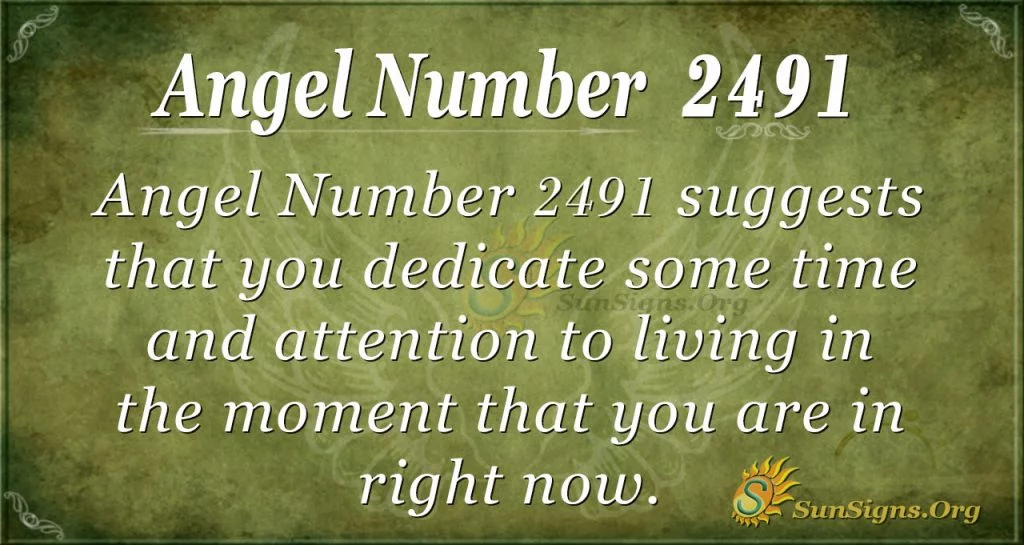 Wanting the best for you at all times, Angel Number 2491 suggests that you dedicate time and attention to living in the present moment. Your angels feel as though you are devoting too much time to the future and the past, and they are looking for you to focus on what you are going through right now, at this present moment, instead.
