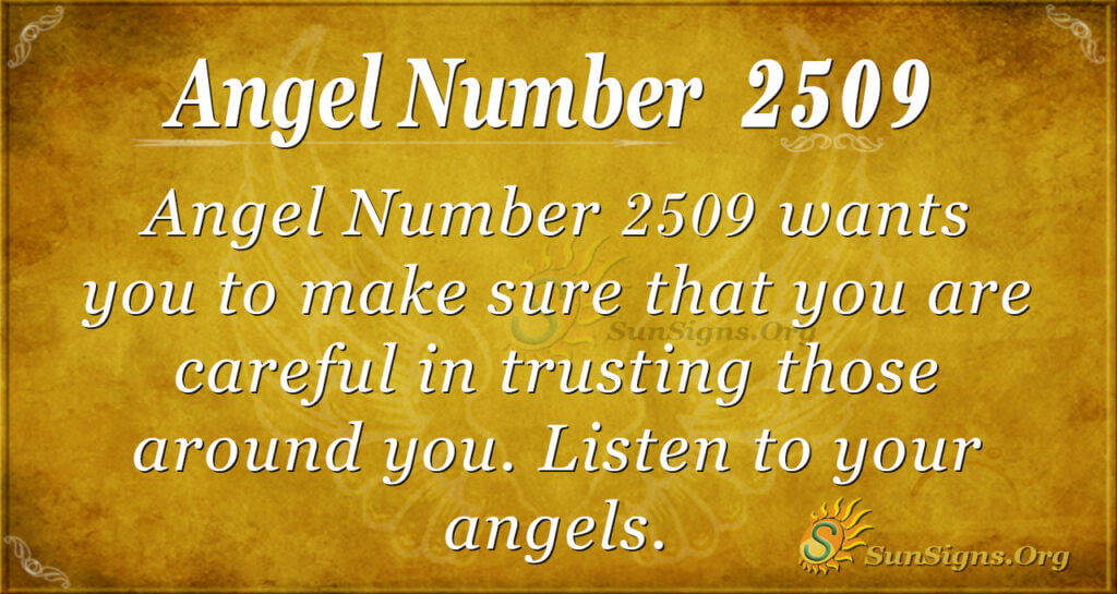 People around you can be the source of your failure or success. That’s why angel number 2509 wants you to be careful and consider whom you welcome into the inner circle. The above beings are so cautious about your progress and will do anything to succeed. So, humble yourself and be selective of those surrounding you.