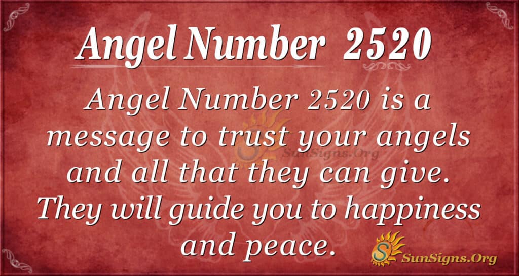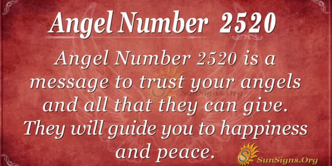 What does 2520 mean? As you go through all of the different stages in your life, you will face all sorts of difficulties and issues as you go around and work on different elements. When you lose sight of where you are going, allow Angel Number 2520 to guide you and keep trusting your angels. All they can give you is to guide you on the way to happiness and peace.