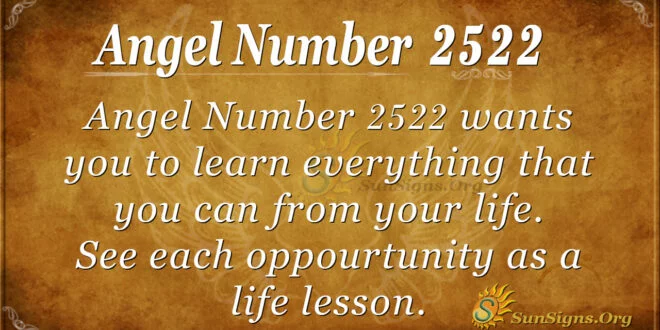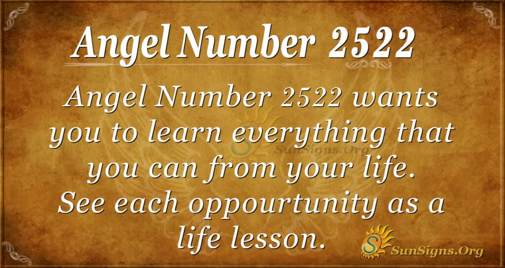 Divine Number 2522 wants you to make sure you will learn everything you can from your life, all of the parts waiting for you to benefit from them. See each opportunity as a life lesson, essentially.