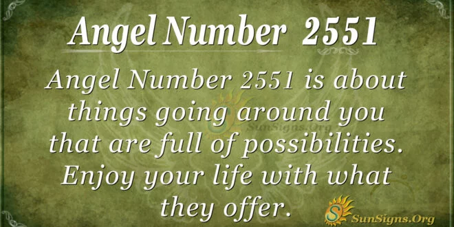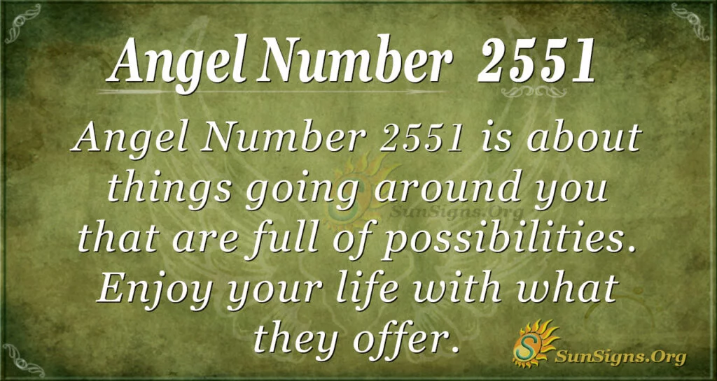 Things around you are full of possibilities right now. While it may be hard to figure out what they all mean specifically, Angel Number 2551 wants you to go out there and take on all that they have to offer so that you are ready to enjoy your life and all of the things that are going to be waiting for you and your successful times.
