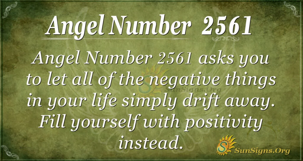 Wanting you to let go of anything holding you back from life and all that it can offer you, Angel Number 2561 asks you to let all of the negative things in your life drift away.
