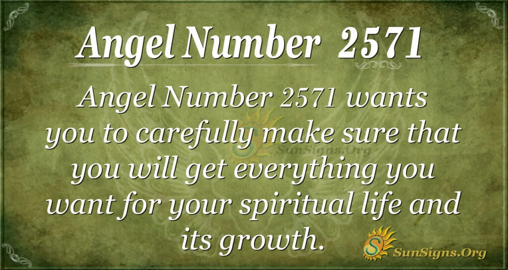 Generally, 2571 is a sign of success. Your guardian angels want you to share your success with the people around you. Most importantly, share your success with those behind you, especially your family.