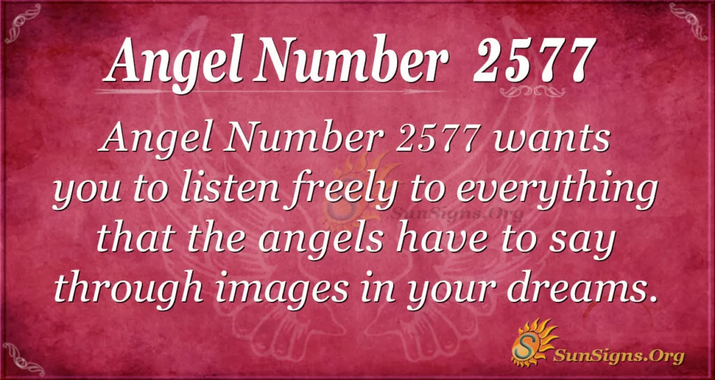If you find images coming to you in your dreams, you must pay special attention to what they could mean in your life. Remember that this is a massive part of how your angels communicate with you, so Angel Number 2577 wants you to listen freely to everything they have to say.