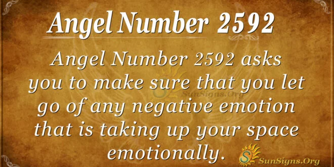 If you keep seeing 2592 everywhere, it is a sign that your guardian angels are concerned about you. Look at 2592 when this number appears to you. Afterward, you will understand why you should let go of any negative emotions in your mind. It is one way of beginning a new life.