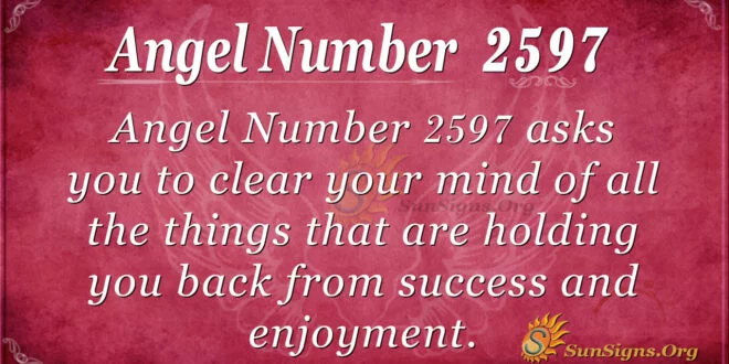 To stay focused on the right things in your life, you need always to remember to keep your mind clear. Angel Number 2597 asks you to work hard at clearing your mind of all of the things that will be holding you back from success and enjoyment in your world.