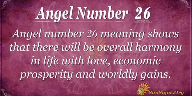 Angel number 26 means that life will be harmonious, with love, economic prosperity, and worldly gains. You will also be recognized as a celebrity and rewarded with social distinction. This will enable you to act on a higher plane and serve humanity passionately and with vigor. You will become a selfless crusader, and fame and money will be worthless.