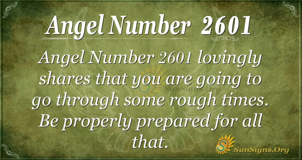 What does 2601 mean? You keep seeing 2601 everywhere and wish to understand what it signifies. Your forgone fathers want you to be well prepared for all that will enter your life and give you a little challenge. Angel Number 2601 lovingly shares that you will go through rough times that make you feel like you are struggling.
