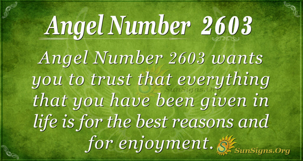 Everything you have been given in life is there to help you get far with all parts of your life. Therefore, the foregone saints tell you that even if you can’t see quite the reason, you have all of the positivity or traits you do. Angel Number 2603 wants you to trust that it is for the best reasons. You’ll be able to enjoy everything they give you in your world.
