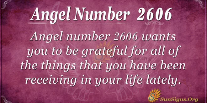 Wanting you to show gratitude for all of the things you have been receiving in your life lately, Angel Number 2606 reminds you that this emotion is critical for showing your angels that you have been able to have a happier quality of life because of their presence in your world.