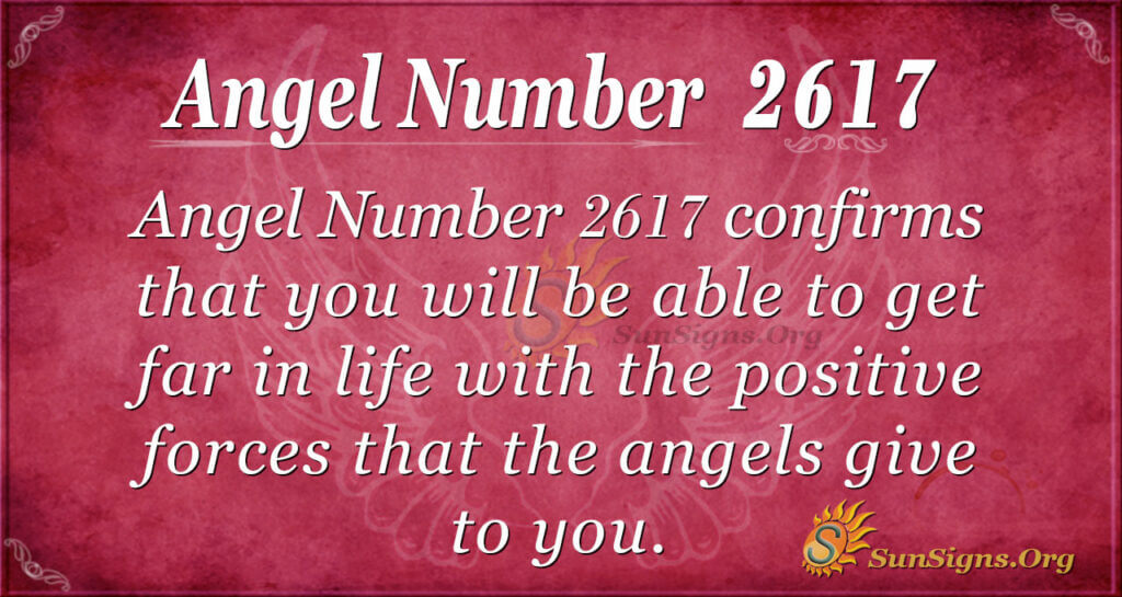 Your connection with your loving angels is essential in your life. You need to harness the energy it has given you and use it to get far in life. Angel Number 2617 wants you to see that you can get far in life with the positive forces the angels give you. The more connected your guardian angels are to you, the better your life can be in the long run.