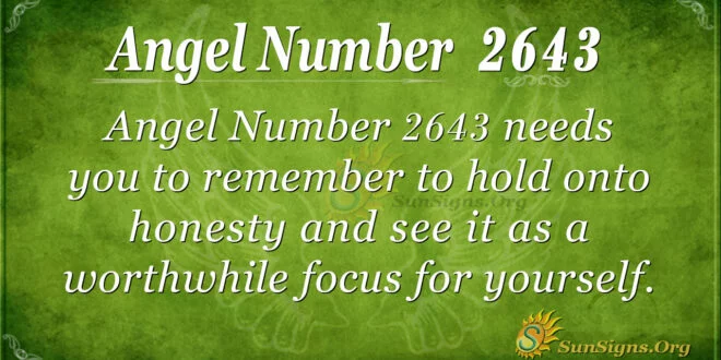 2643 spiritually makes it clear that honesty pays. It pays to be honest, not just with other people but also with yourself. 2643 means telling you to be honest with yourself, as this is the only way you will understand yourself better.