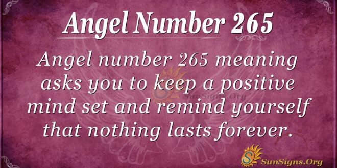 Faith in your creator is the only thing that lasts, but challenges will pass. Angel number 265 encourages you that whatever situation you are in now is not permanent; good days are coming.
