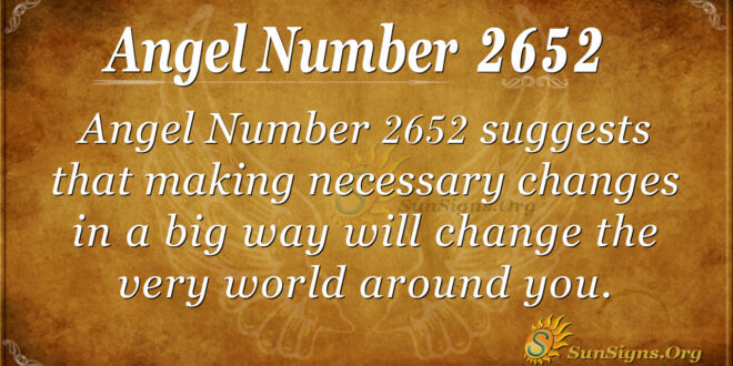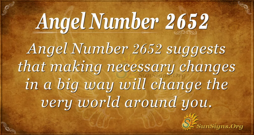 Your life is at a point where you need to make sure you are making it change as it is meant to. Angel Number 2652 suggests that this is, in a big way, going to change the very world around you, even if you can’t see it yet.