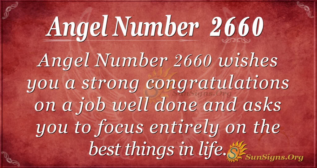 Your life is falling into place behind the scenes right now due to all of the hard work you’ve put into living your life by your own rules. Angel Number 2660 wishes you a strong congratulations on a job well done and to focus entirely on the best things that are waiting for you and the bright life that means the most to you.
