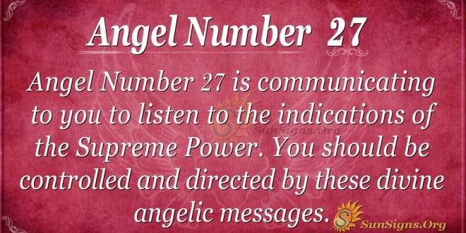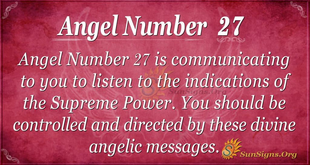 Angel Number 27 is communicating to you to listen to the indications of the Supreme Power. It would help if you were controlled and directed by these divine angelic messages.
