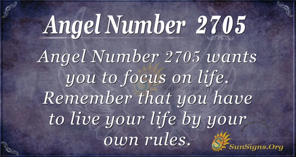What does 2705 mean spiritually? You keep seeing 2705 everywhere, every day. Indeed, your foregone fathers are informing you not to listen to those who criticize you negatively. So, no matter what anyone else tells you, Angel Number 2705 wants you to remember that you have to live your life by your own rules and focus on the idea that your life will create itself based on the things you focus on.