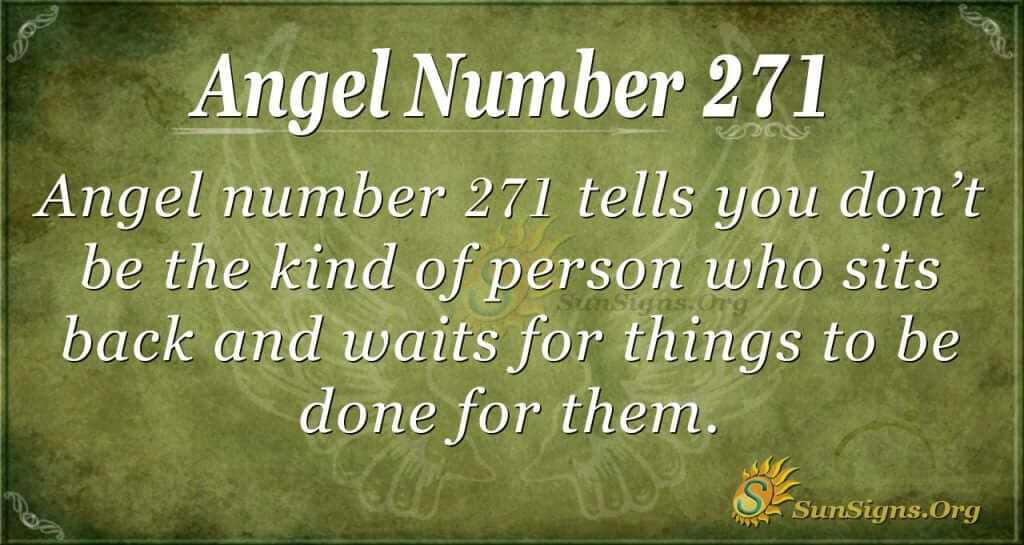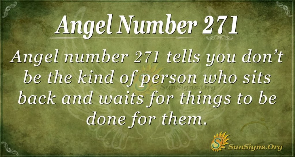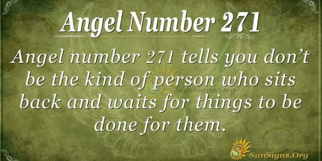 271 symbolism wants you always to put yourself first. In all you do, focus on yourself more than others will follow. Do not hold yourself back for the benefit of others.