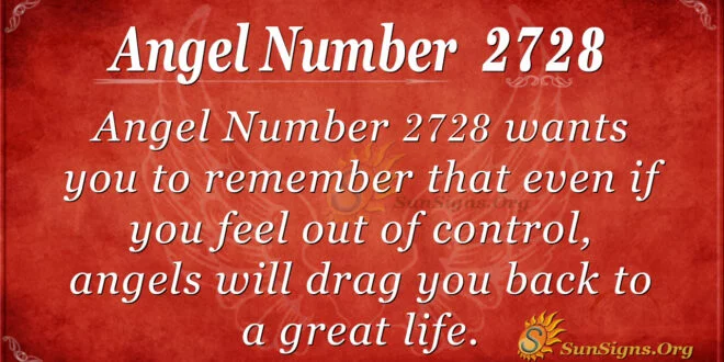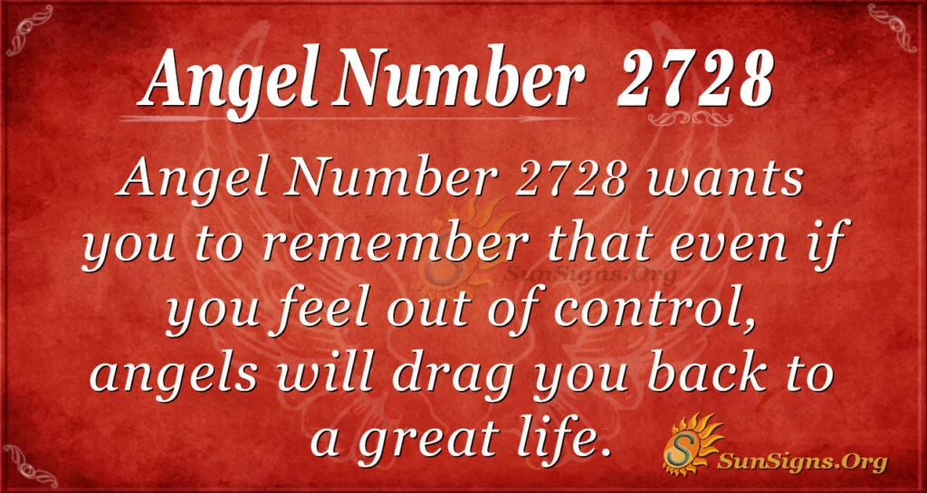 Angel Number 2728 wants you to remember that even if you feel out of control, trust your angels to bring you back to the place you need to be to have an excellent quality of life in all that you do.
