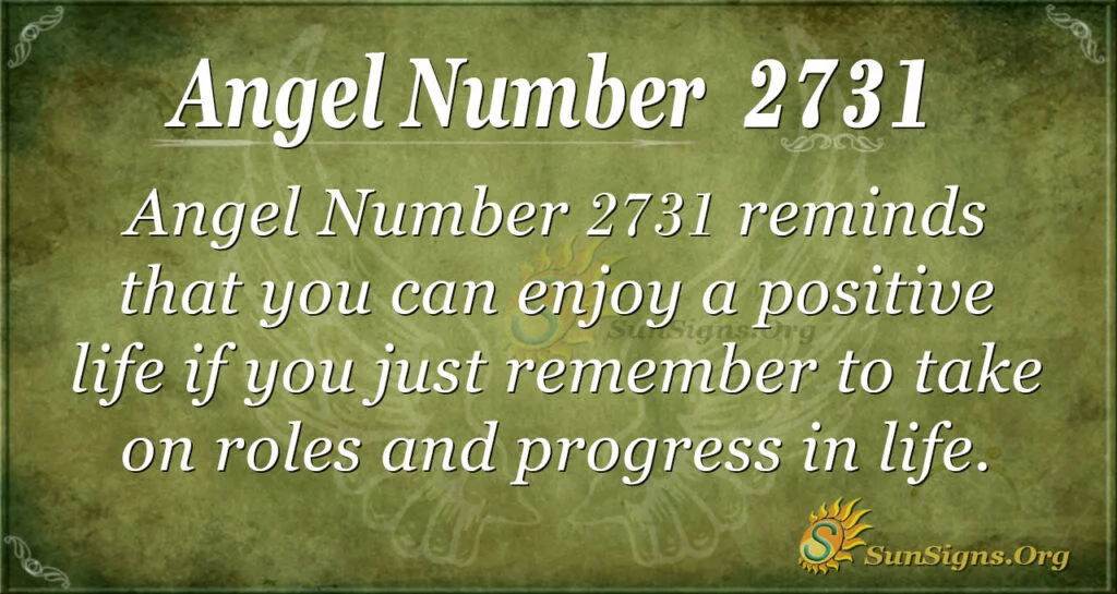 2731 spiritually, the meaning insists life has more to offer than what you think. Therefore, accept any role that might come your way. Consequently, always strive to make your life better as time progresses. You should also understand that the world is evolving. Thus, blend in with society to remain happy in life.