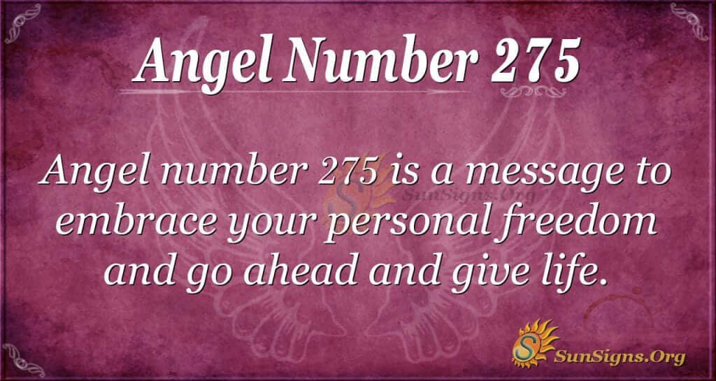 Number 275 is a sign that your divine angel’s help is needed to save your loved one. However, do this with caution and respect.