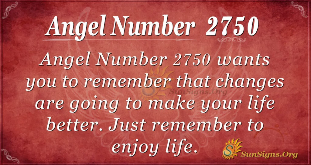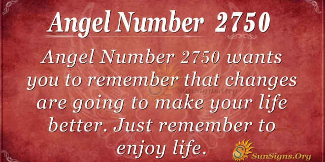 As your life gets ready to change dramatically, Angel Number 2750 wants you to remember that these changes will make your life so much better in the long run, so just remember to enjoy it.