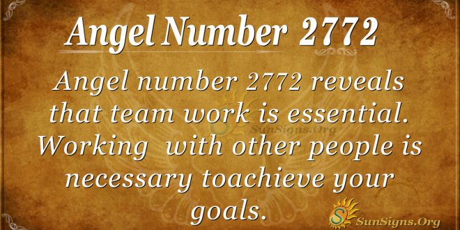 2772 angel number derives its meaning from the combined energies of the numbers 2, and 7 which appear twice. Number 2 resonates with the energies and vibrations of cooperation, hard work, teamwork, partnerships, and individuality. This number also signifies trust and faith in others. The moment you trust someone in your life, you will be able to heed their advice and counsel. This angel number is encouraging you to work with other people to realize all your dreams and goals.