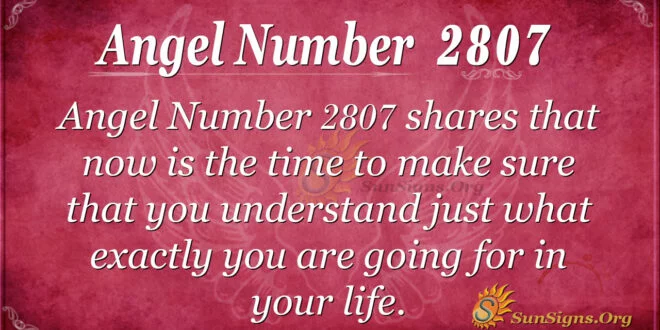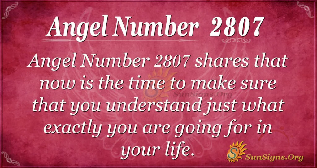If you want all parts of your life to fall into place exactly as you were hoping, Angel Number 2807 shares that now is the time to ensure you understand what you are going for in your life.