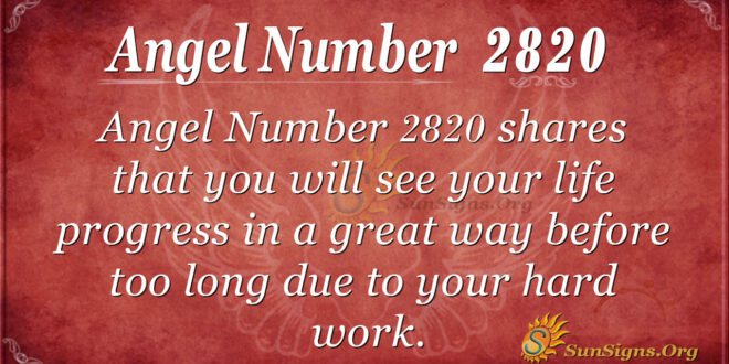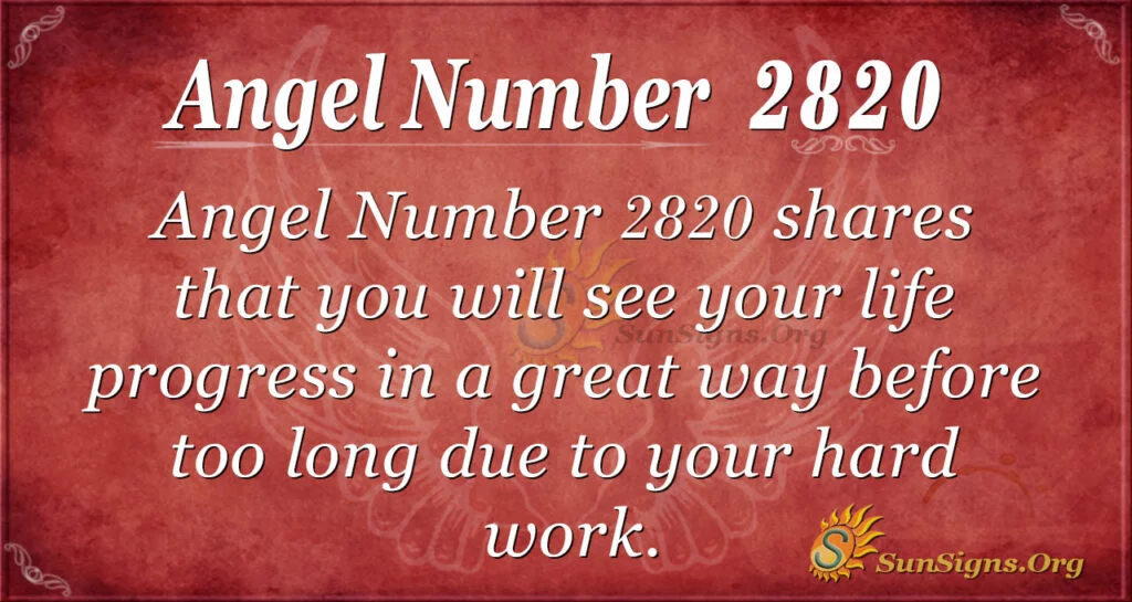 Angel Number 2820 shares that you will see your life progress in a great way before too long, and it will be due to the hard work you are putting into believing in all of the best parts of life.