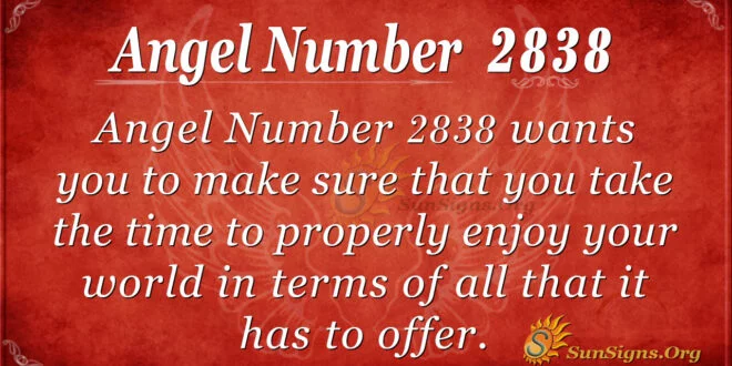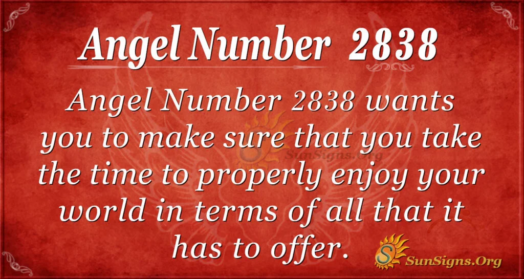 Your life is important, and you need to live it the right way to ensure that you enjoy it to the fullest extent possible. As such, Angel Number 2838 wants you to make sure that you take the time to properly enjoy your world and all that it has to offer.