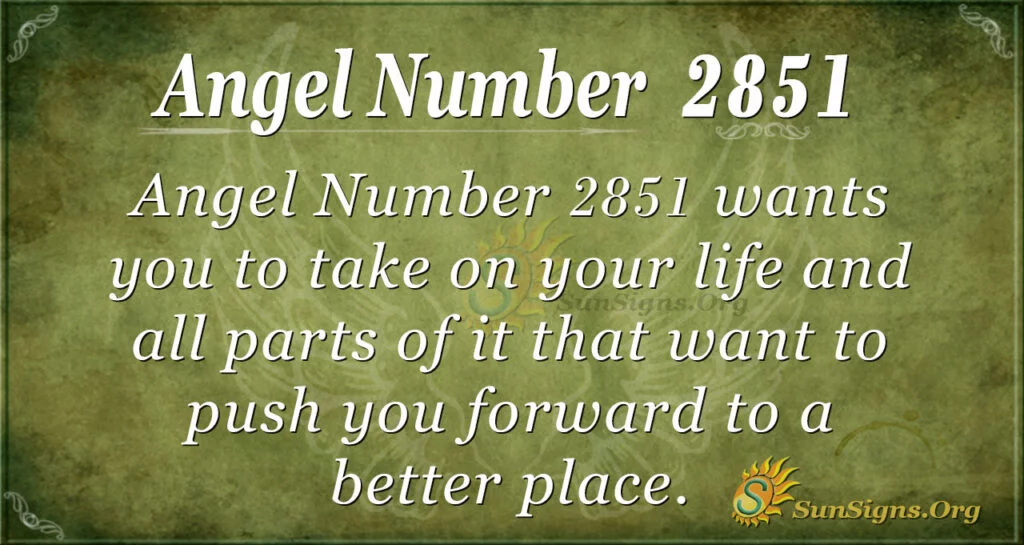 The spiritual meaning of 2851 is to follow the path that is destined for you. Listen to your instincts and follow your heart, and you will always be headed in the right direction. Do not let the challenges in life hold you back.