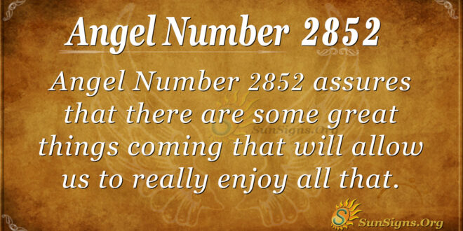 You need to learn that happiness is what we feel when we are not feeling sad. This means, too, that we will have to accept the fact that there will be bad parts in our lives. As we go through all of these, says Angel Number 2852, some great things are coming to allow us to enjoy all we can do.