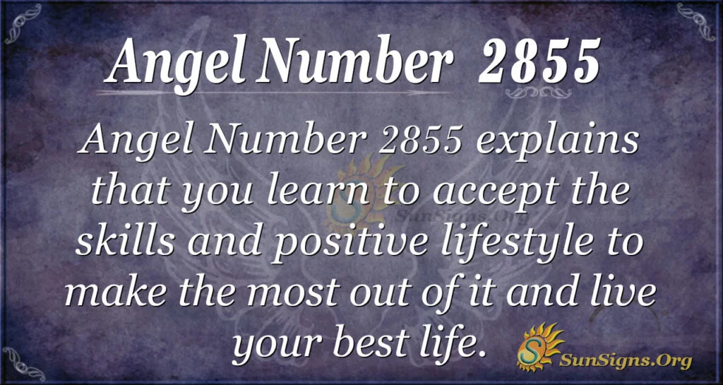 Angel Number 2855 reveals that you can accomplish a lot with the right skills and a positive lifestyle. Please make the most of it and live your life in a way that feels best to you.